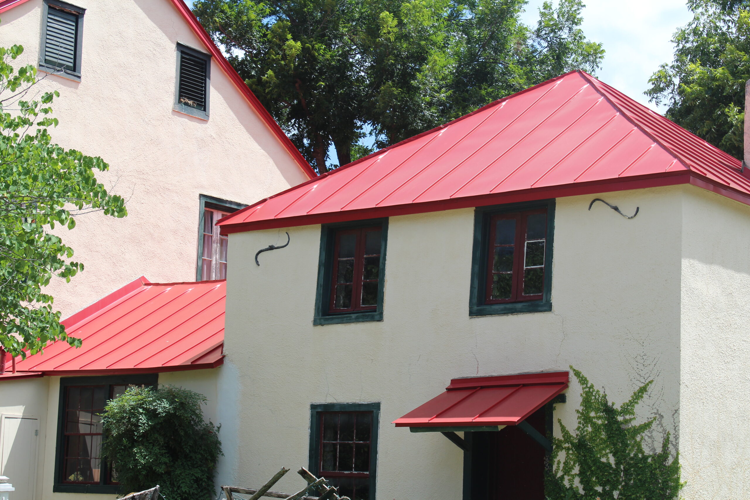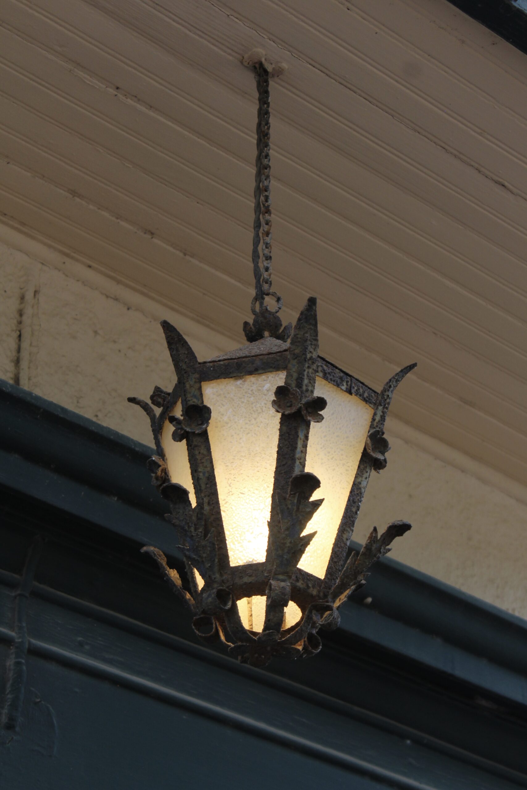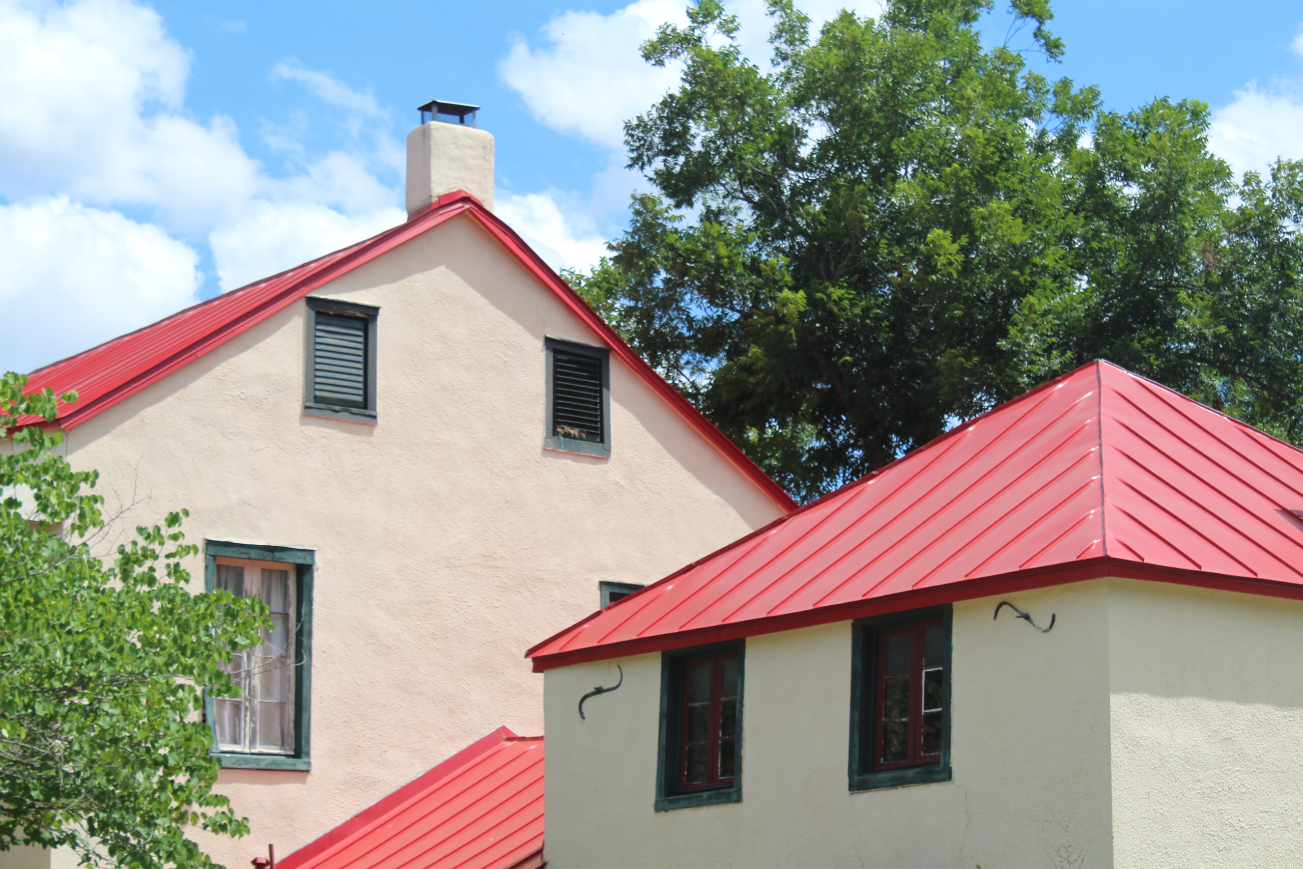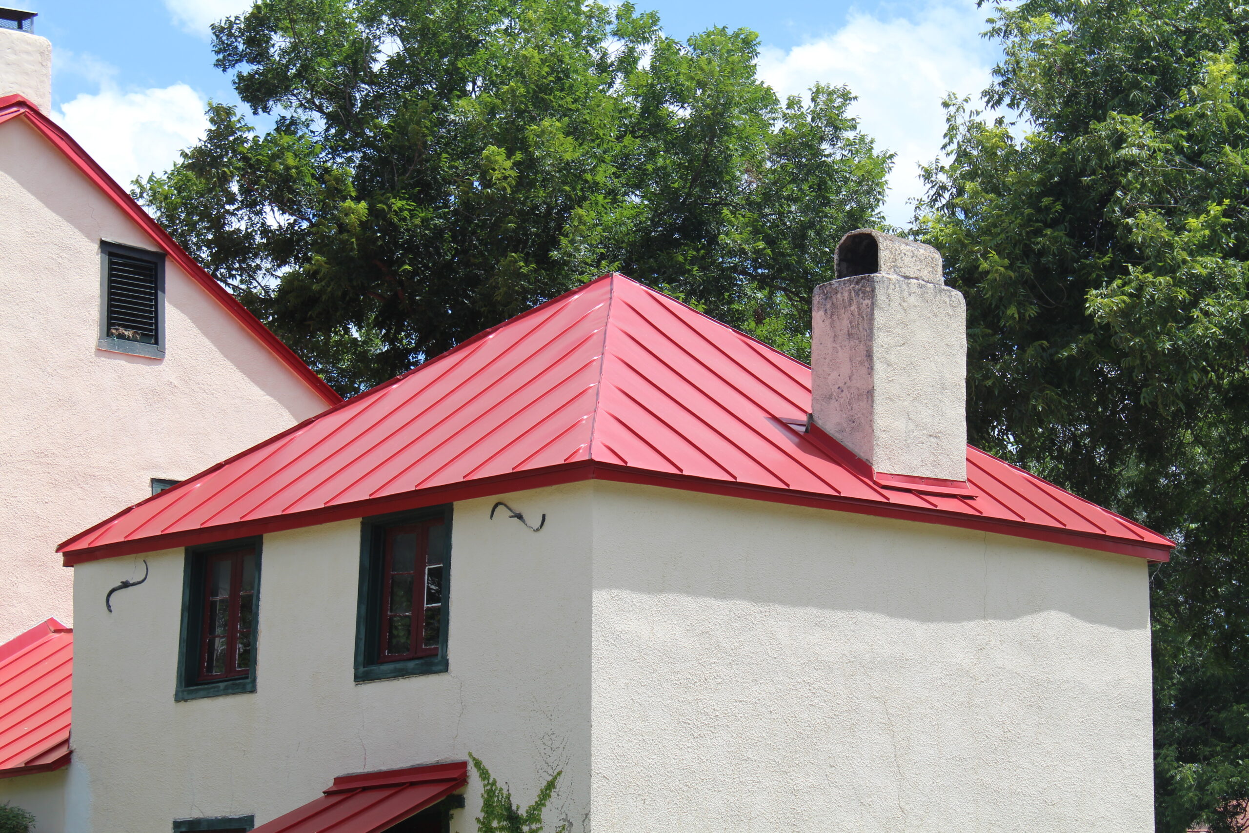 The secondary volume also has a metal, standing seam roof but is instead hipped. Its front and back facades both have two bays with two openings on each floor. The door on the front facade’s first floor is shielded by an awning. This part of the structure once housed the hotel’s servants and consisted of two floors as indicated by the wood still present in the stone walls. Its ceiling reveals the original wooden roof structure.