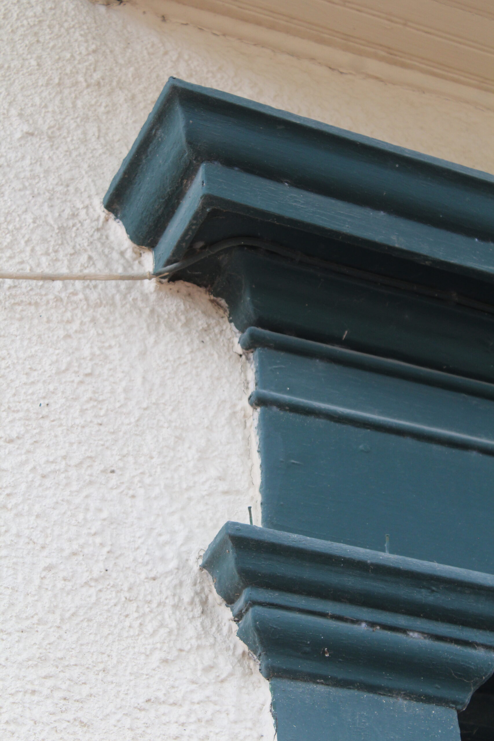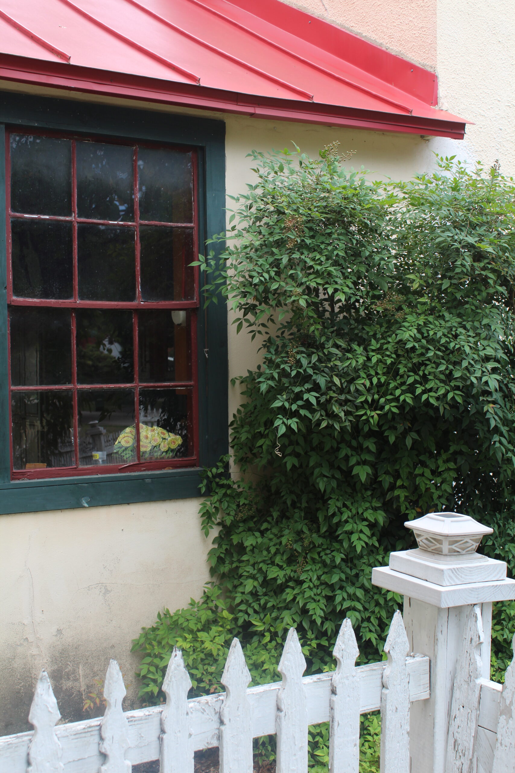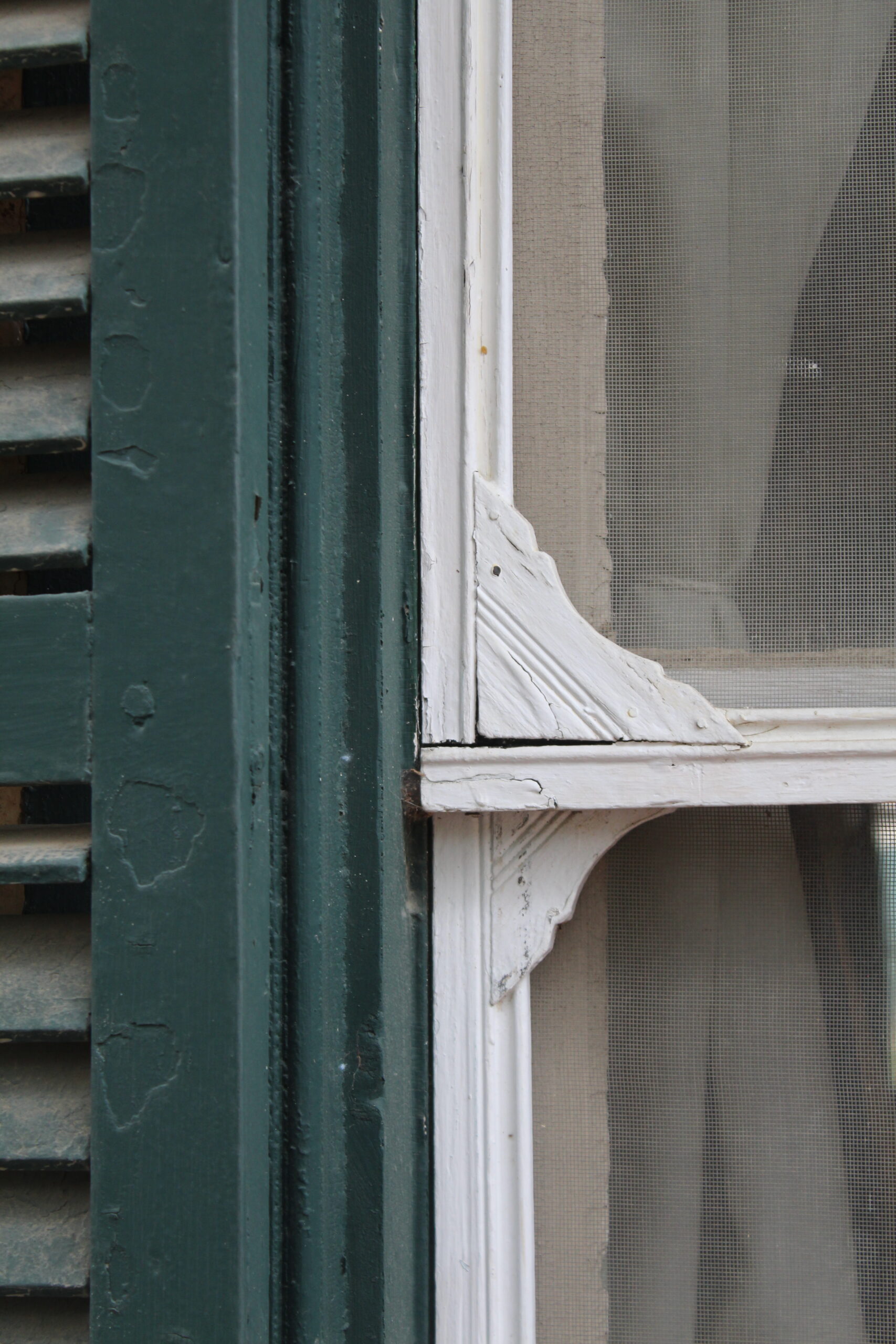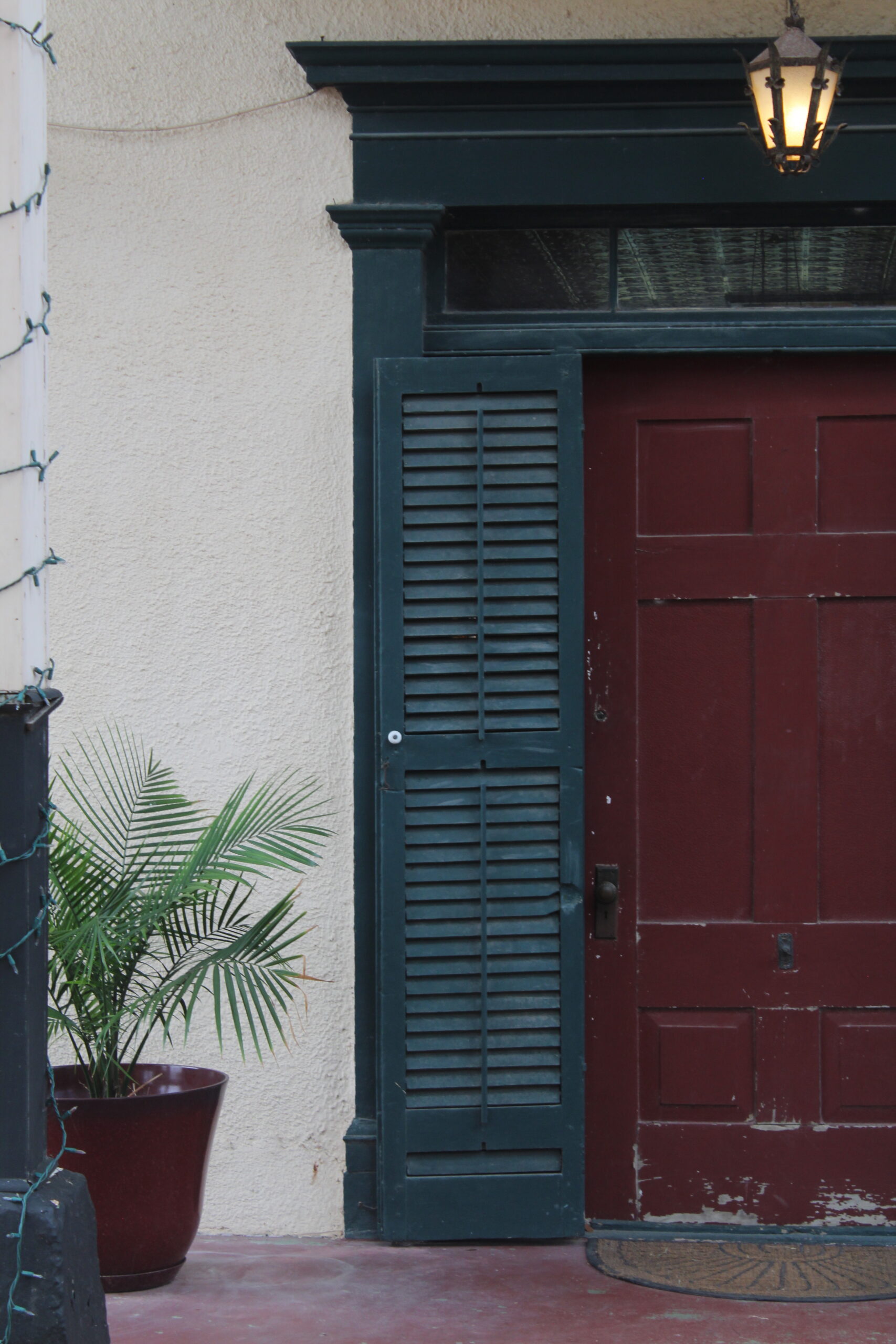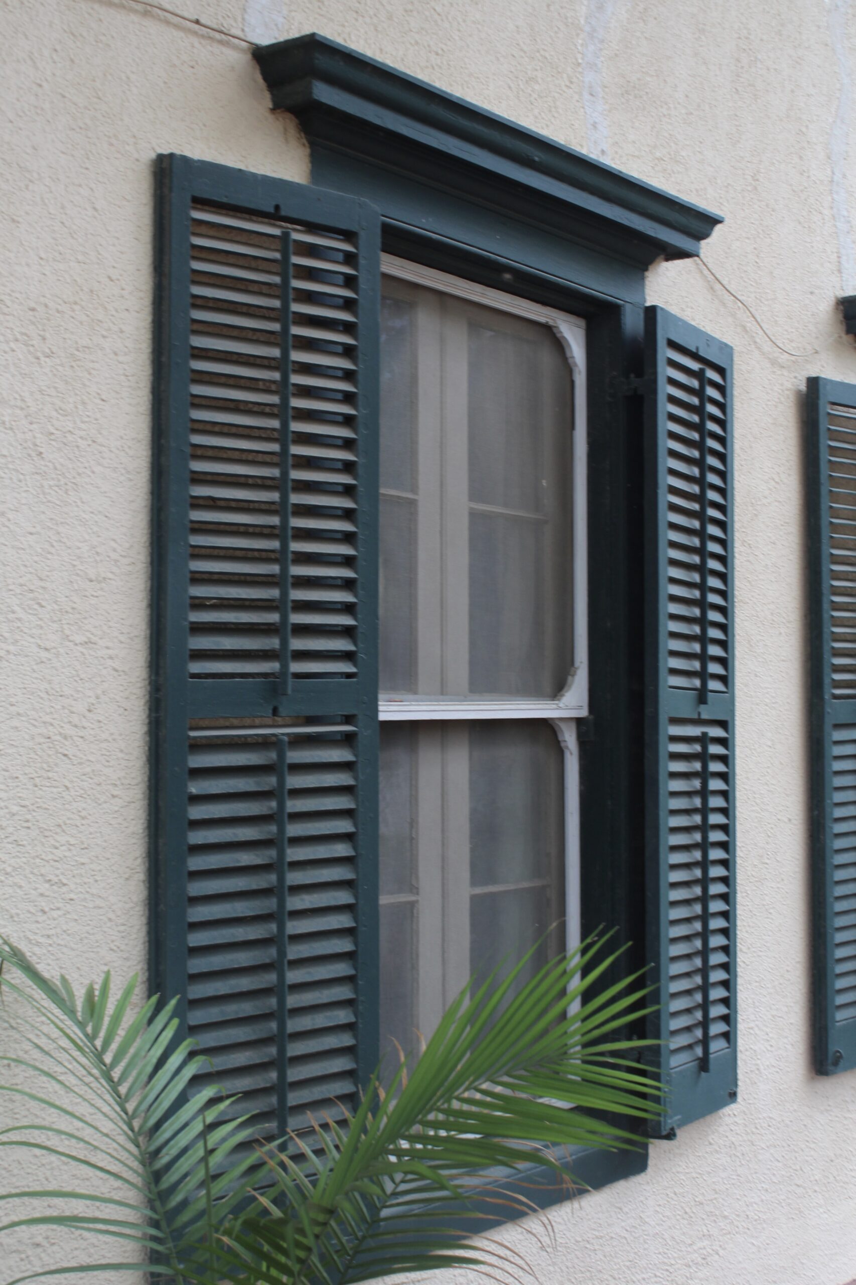 The hotel boasts a symmetrical, five-bay facade with a central door on both floors. The door at ground level is framed by sidelights and a transom window covered by shutters. The upper story door once opened to a pronounced balcony. The casement windows are protected by screens and are framed by functional shutters.