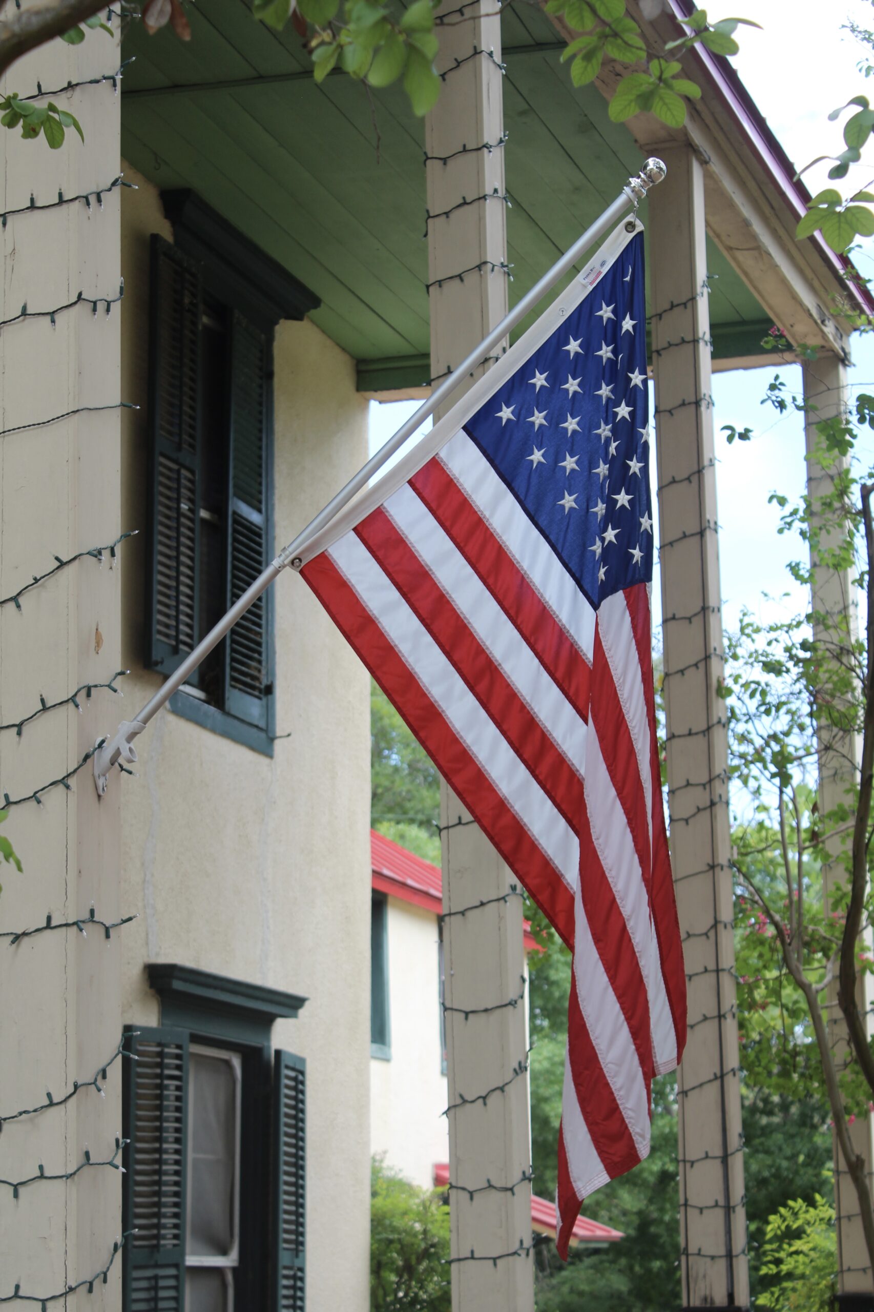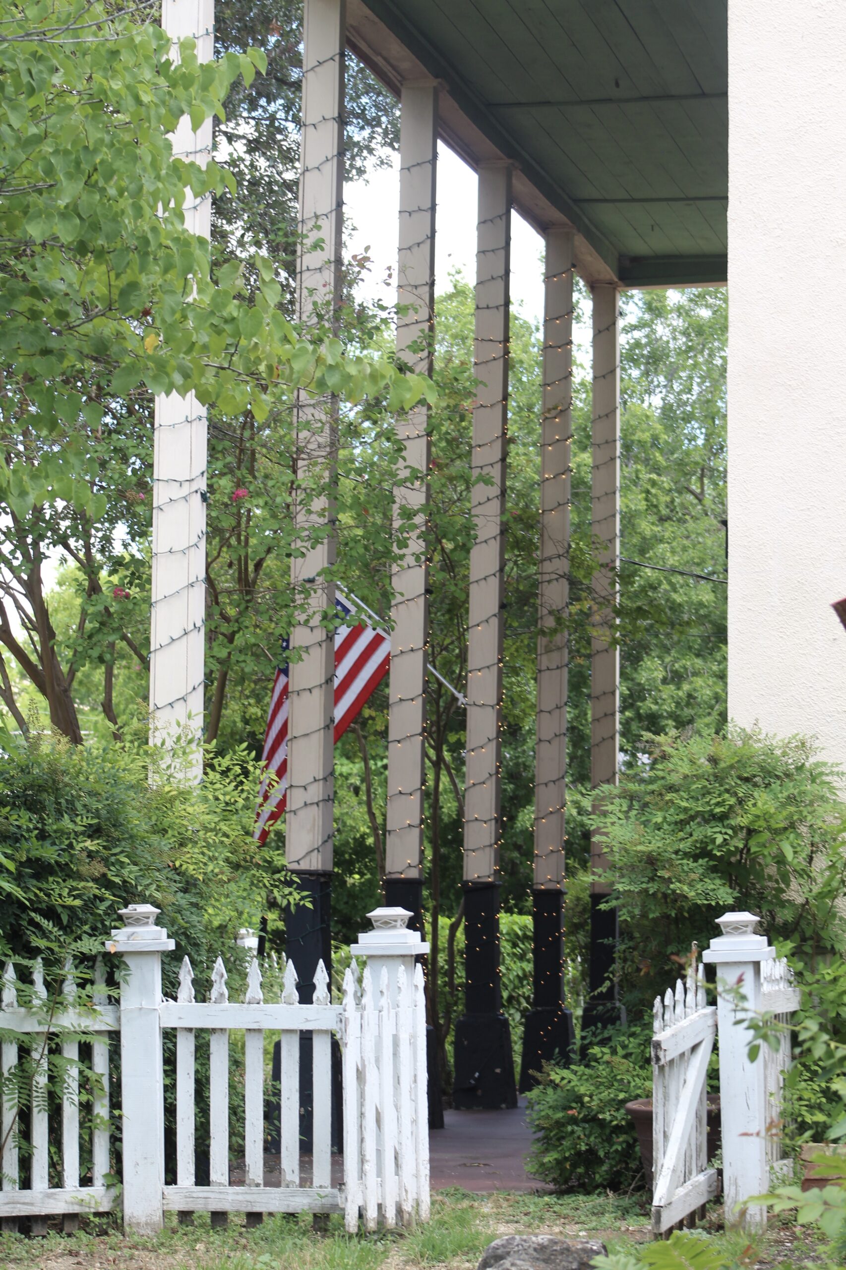 The second level features four bedrooms and a bathroom. Historically, the rooms did not have the walls that they do today as they once were cloth. The street-level features a hallway that runs from the front door to the back door, with a stair scaling to the second floor. The back door, like the front, is framed by sidelights and a transom window. The exterior has a front gabled portico leading to this back door. On one side of the hallway is a two-room parlor; one of the two rooms has been converted into a bedroom. On the other side of the hallway sits a dining room. Above the two floors rests an attic that hosted the bedroom of previous owners.