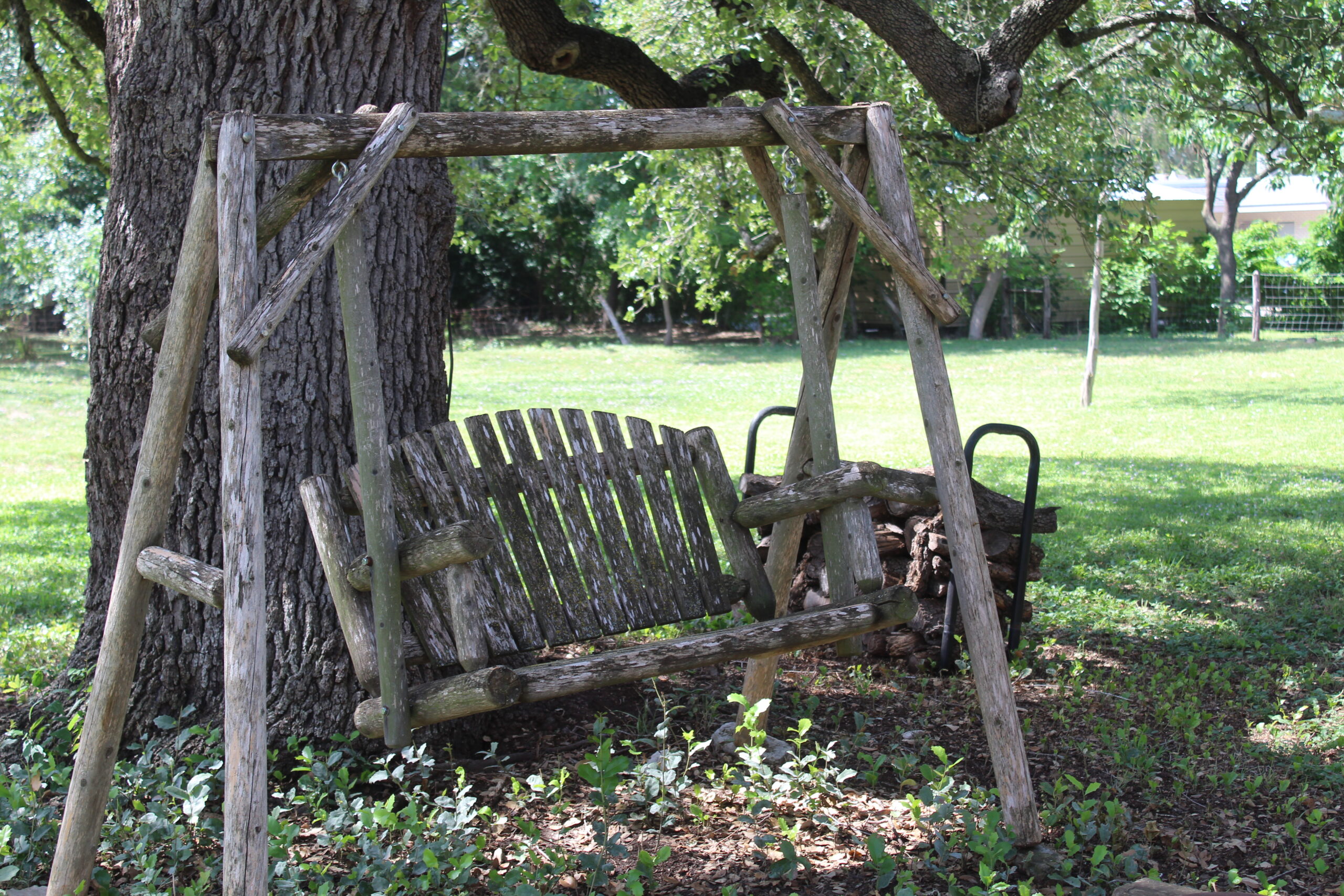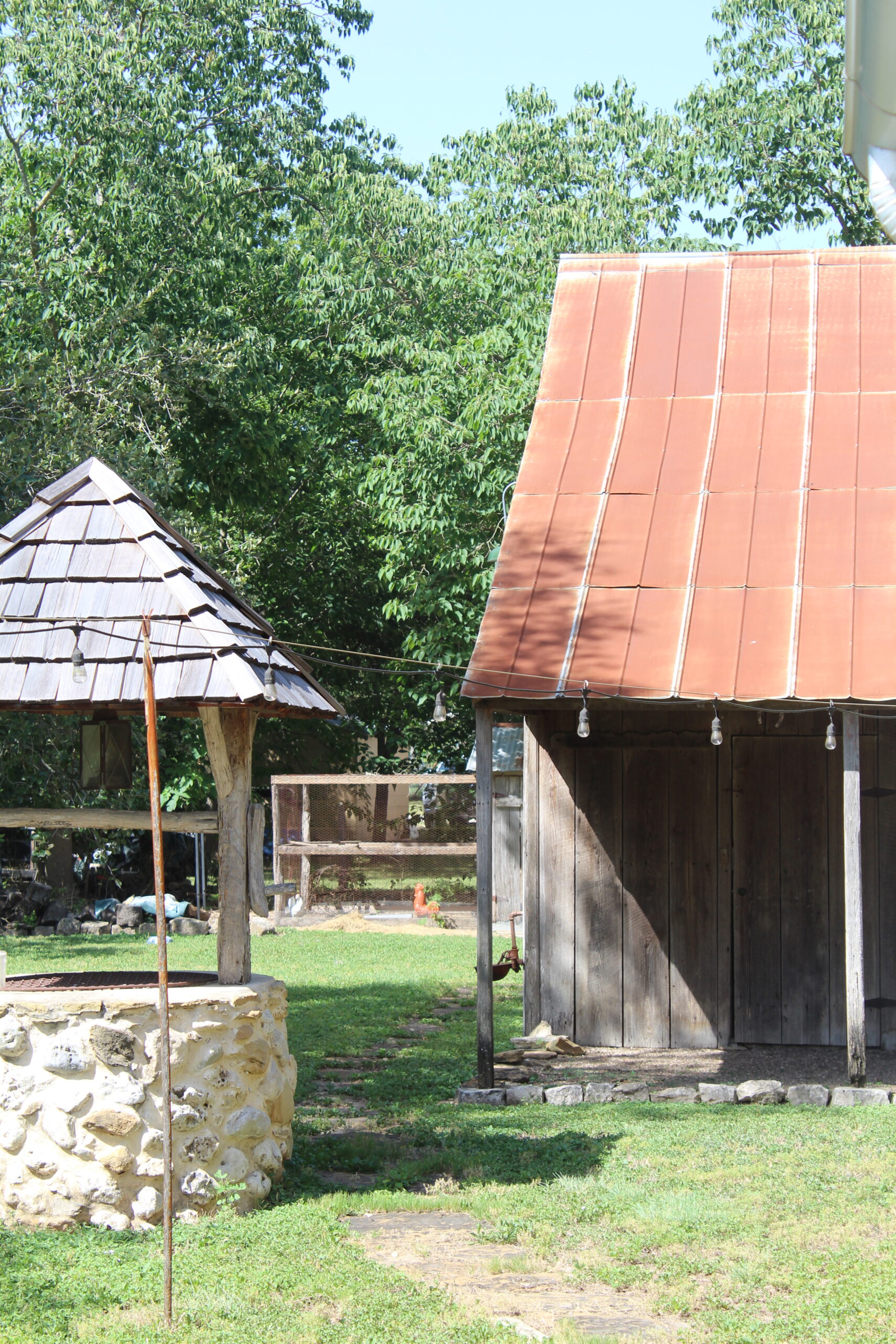 The backyard hosts a large barn that is capped with a gabled, metal standing seam room and three-bay porch. A shed, a well and a swinging wooden bench also exist on the property.