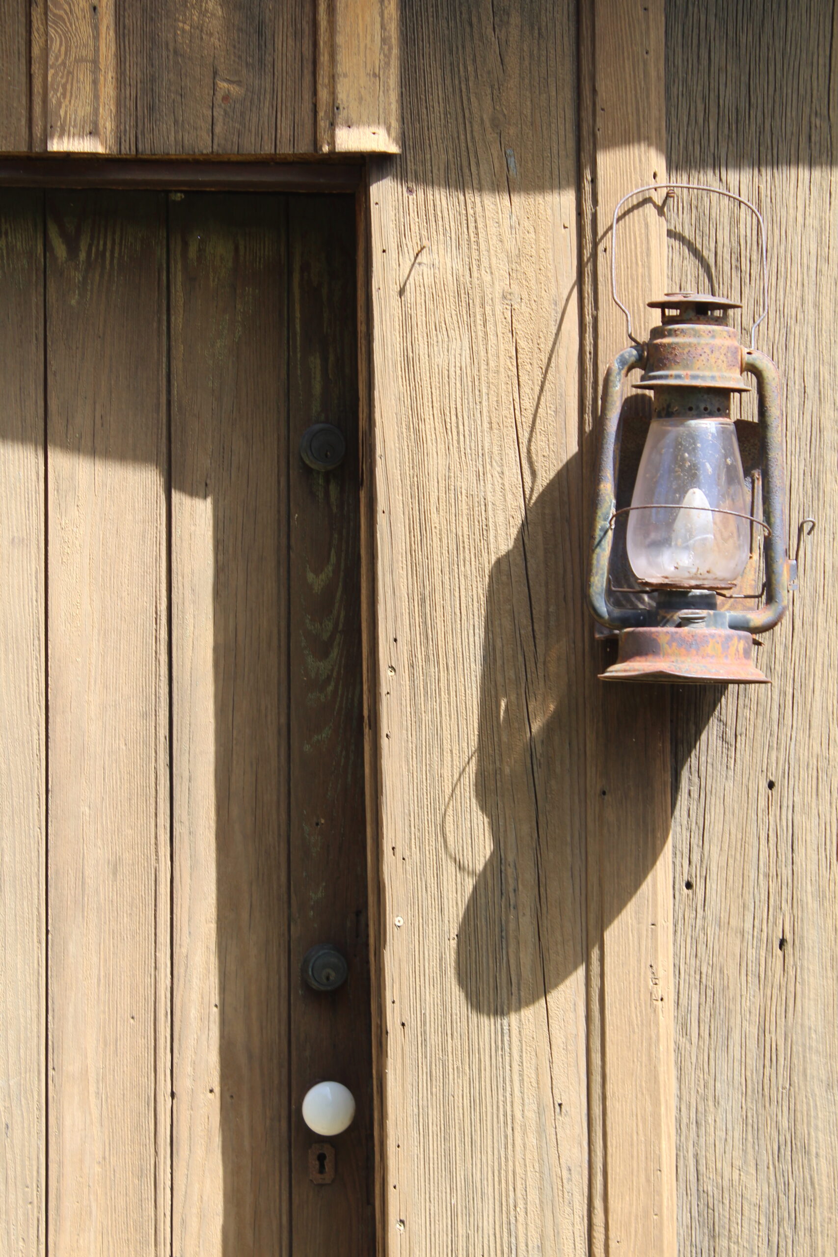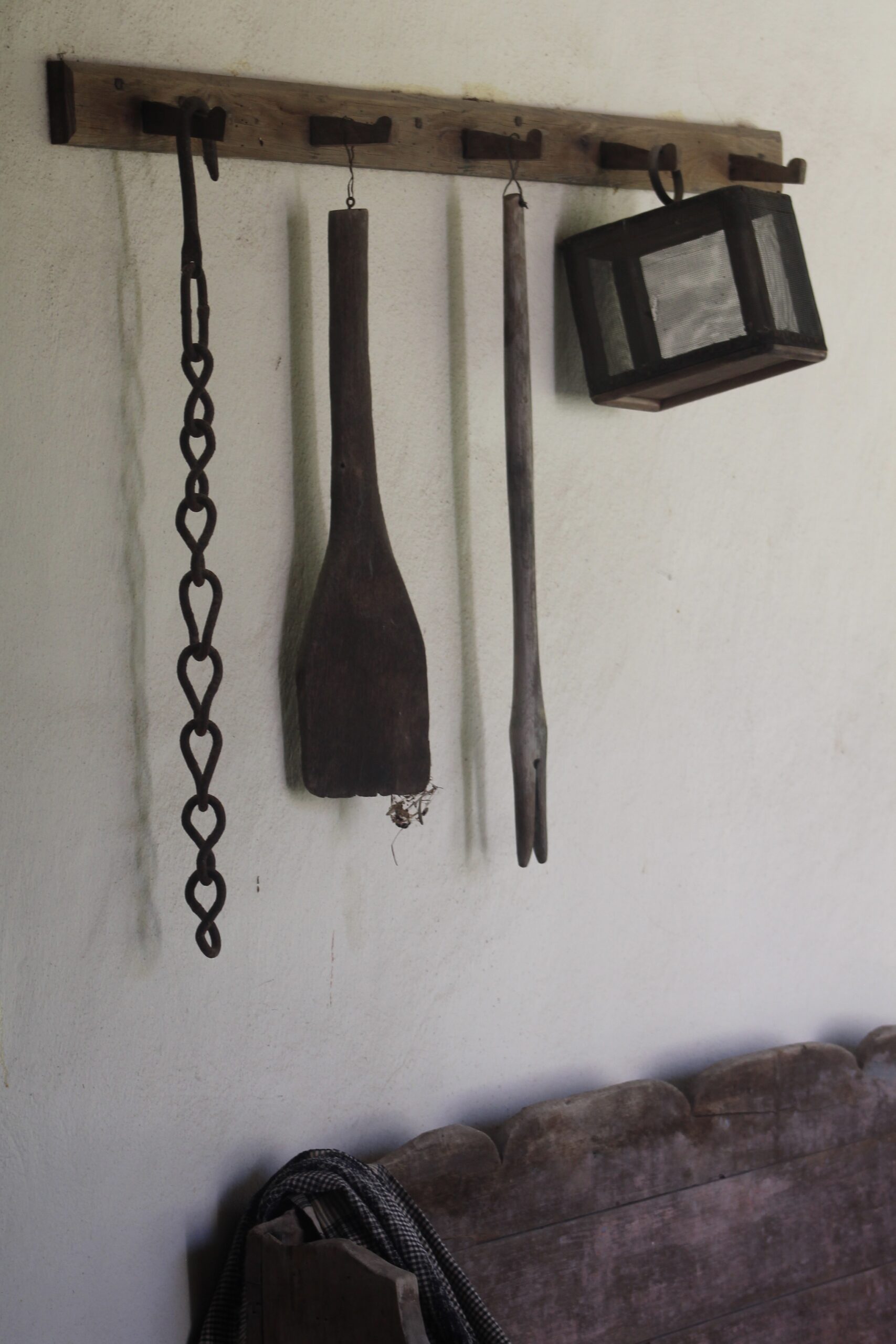 The first floor of this volume also supports a bedroom. The later additions transformed the plan from rectangular to L-shaped and are built lower than the original volume. The likely first addition is occupied by a dining room and the later section services a kitchen, bathroom and wooden shower, circular in shape.